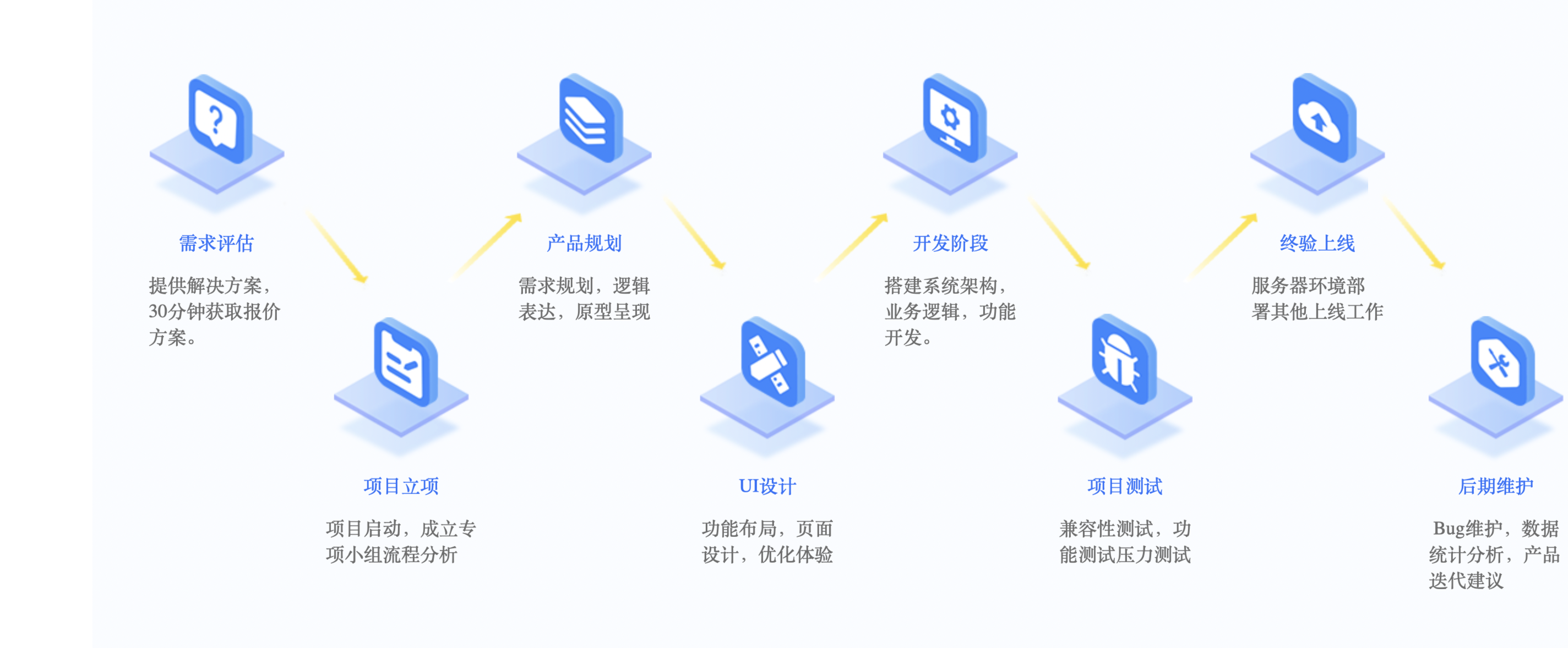 經(jīng)過大量APP開發(fā)項目的經(jīng)驗積累,以 及自身對互聯(lián)網(wǎng)領域商業(yè)模式的了解, 可以為每一位客戶提供專業(yè)性的建議及 產(chǎn)品方案,合理周全的考慮到客戶的需